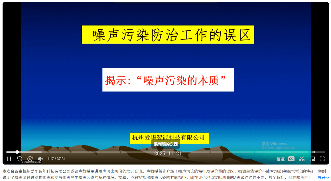 2025年11月21日,杭州愛華智能科技有限公司有幸邀請了原廣州市環(huán)境監(jiān)測中心站教授級高級工程師盧慶普老師前來交流指導(dǎo),并通過線下和線上視頻會議模式,為從事噪聲監(jiān)測及污染防治工作的廣大客戶朋友做了“噪聲污染防治工作誤區(qū)與本質(zhì)探析”專題培訓(xùn)交流會。